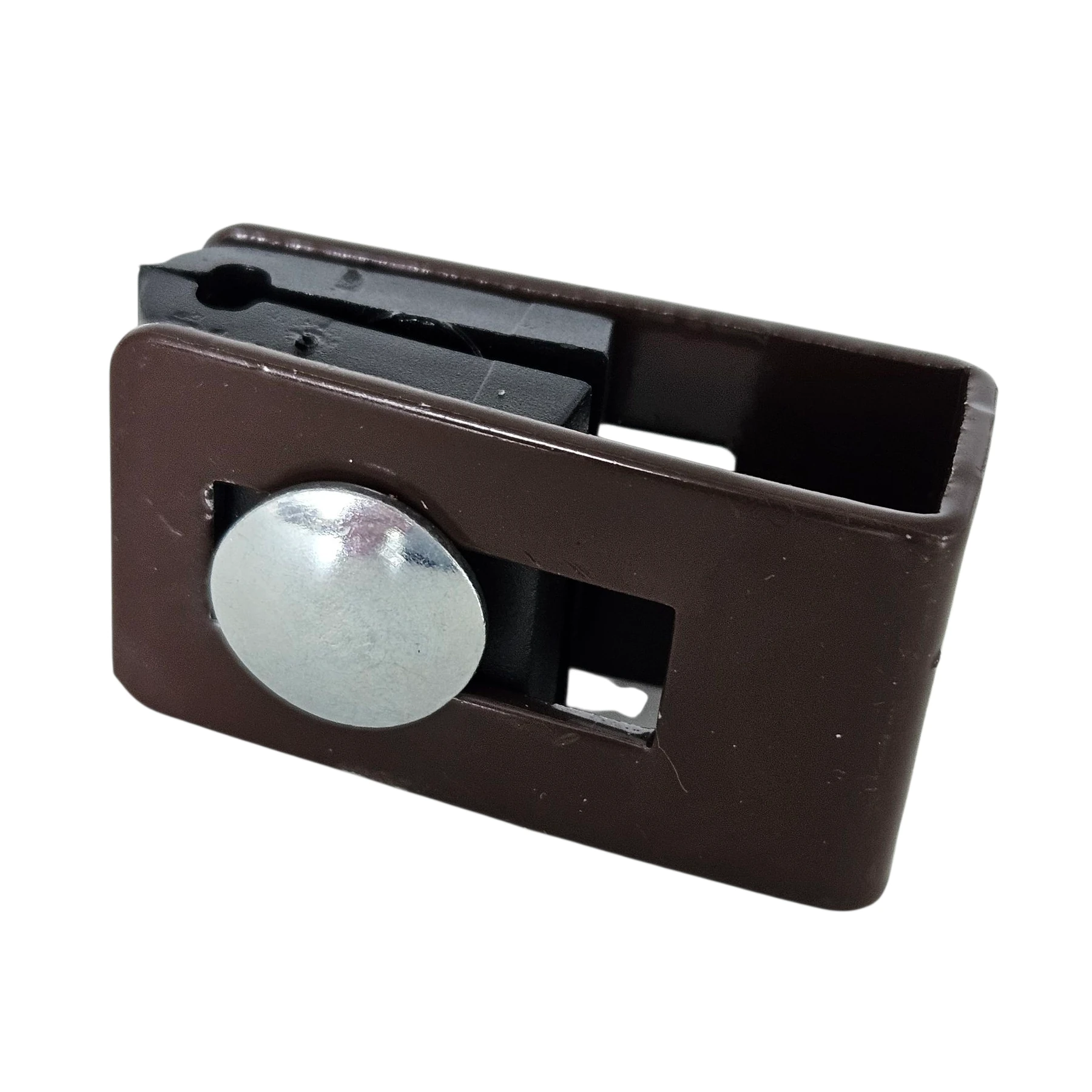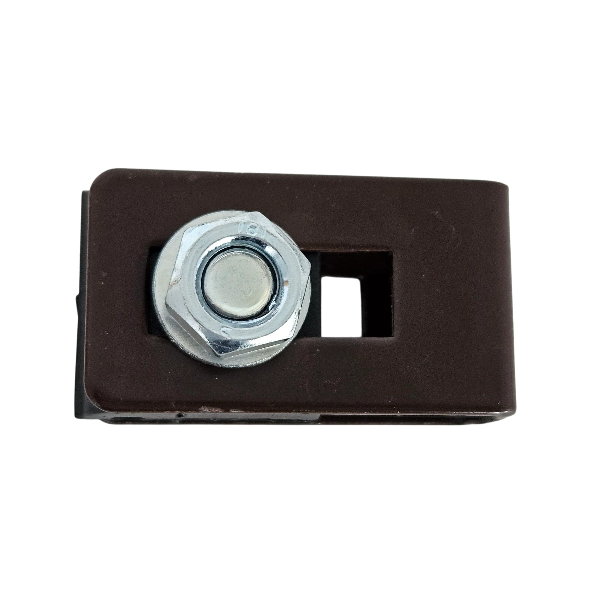 Univerzální objímka držák spojka pro plotové panely hnědá určená pro sloupky s různými průřezy díky univerzálnímu tvaru.