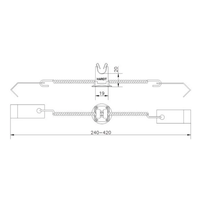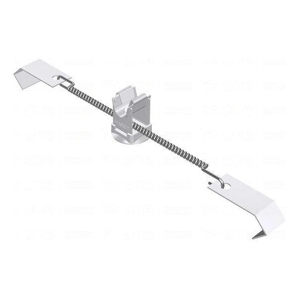 Pružinová ramena zajišťují pevné a stabilní uchycení na hřebeni a centrální prvek s držákem typu U spolehlivě drží hromosvodný drát o průměru Ø8 mm. Výška držáku činí pouhých H=20 mm, což umožňuje diskrétní montáž, aniž by byla narušena estetika střechy.