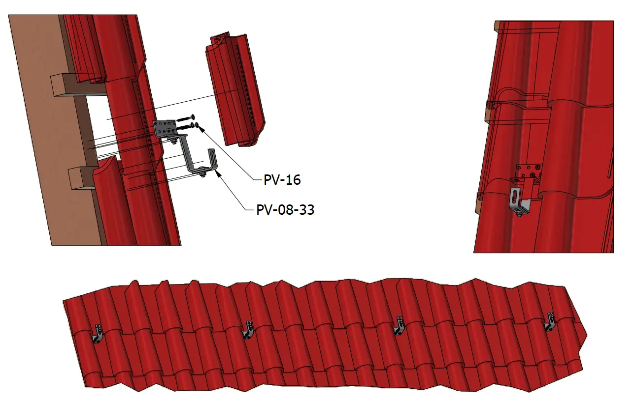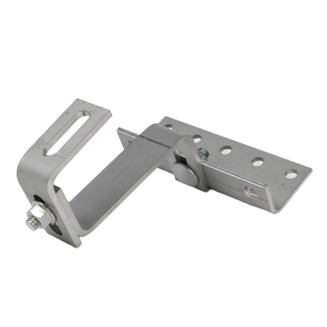 Střešní háky Vario pro upevnění montážních kolejnic k fotovoltaickým modulům na střechách krytých keramickou a betonovou taškou. Zaručuje stabilitu celé konstrukce.
