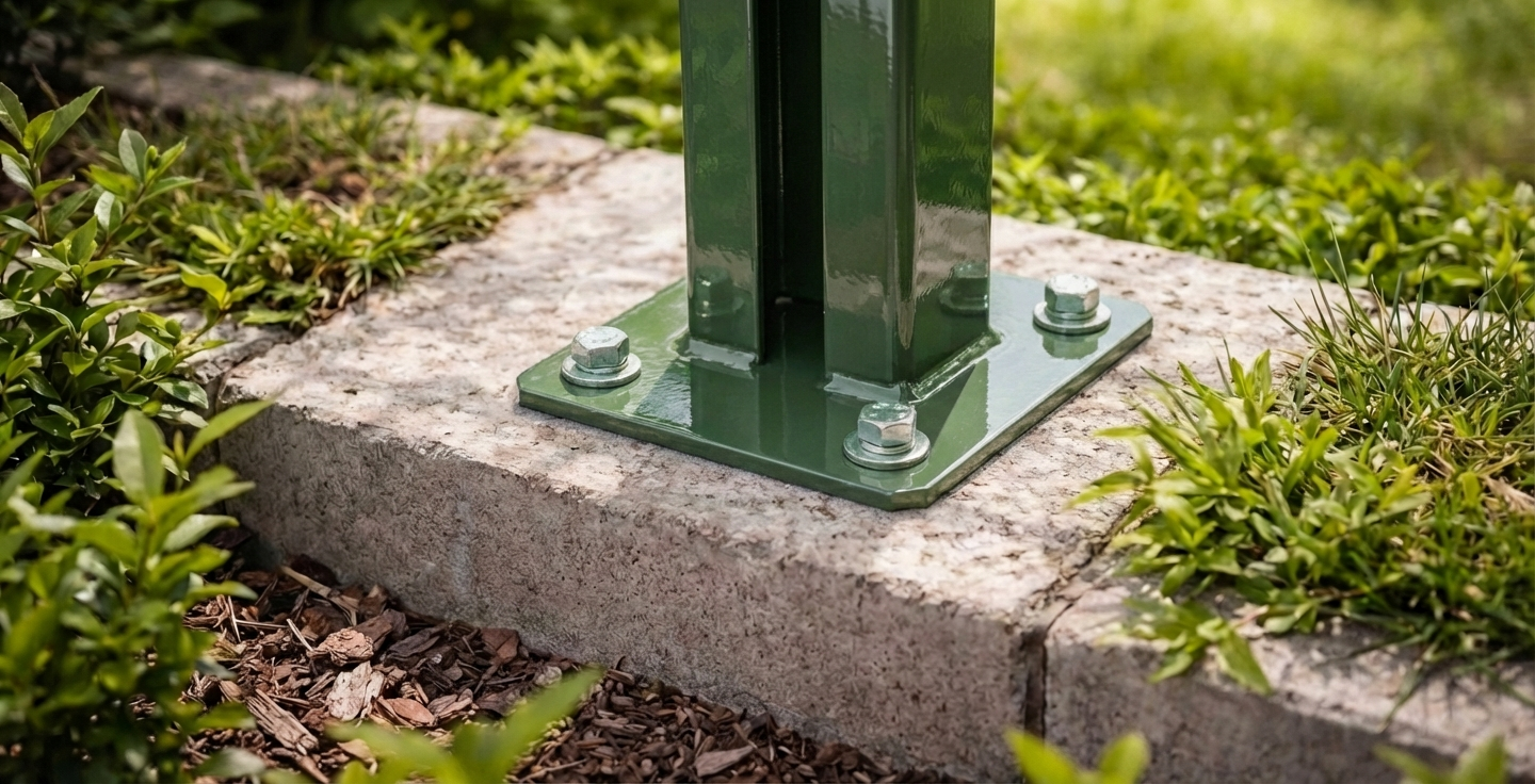 Patka je kompatibilní se standardními plotovými sloupky s profilem 60×40 mm, používanými ve většině systémů panelových plotů. Ideální řešení pro instalační firmy realizující montáž plotů na hotových betonových základech a podezdívkách venku — i v náročných povětrnostních podmínkách.