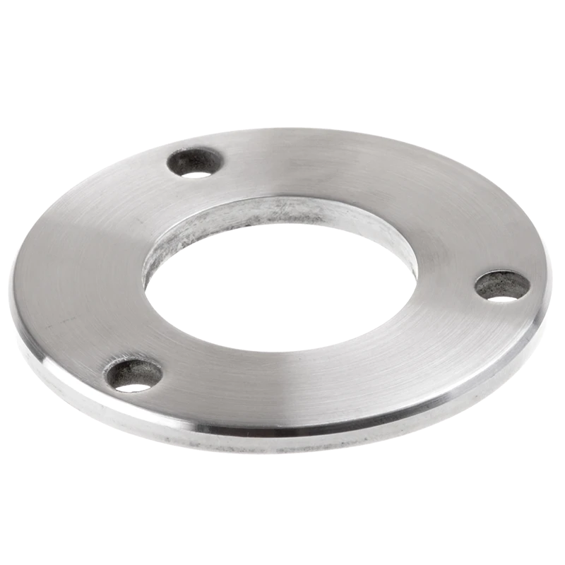 Základna tvoří základ každé zábradlové konstrukce — odpovídá za přenos zatížení a stabilitu celého sloupku. Tři montážní otvory umožňují dodatečné připevnění k podkladu pomocí kotev a centrální otvor o průměru 42,4 mm umožňuje přesné osazení a svařování trubky sloupku. Montážní část lze esteticky zakrýt určenou krycí rozetou a dosáhnout tak čistého, profesionálního vzhledu hotového zábradlí.